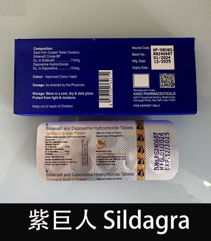 紫巨人 Sildagra Super Power 是來自印度 KASO Pharmaceuticals 製藥公司推出的高劑量雙效壯陽藥,專為改善勃起功能障礙(ED)與早洩(PE)問題所設計。它結合兩大關鍵成分:西地那非 110mg達泊西汀 110mg,一次解決硬度不足與無法持久的困擾,讓您體驗前所未有的強勁性愛表現!