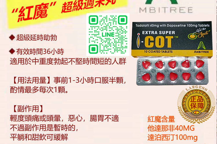 現在,全新升級的印度紅魔 EXTRA SUPER I-COT 雙效錠,正式為你開啟重拾雄風的道路!這款由印度 Ambitree(安必成製藥)研發的強效雙效錠,以前所未有的超高劑量配方,結合犀利士 + 必利勁,針對性功能障礙雙重夾擊,讓你每次都能挺身而戰、持久到底!